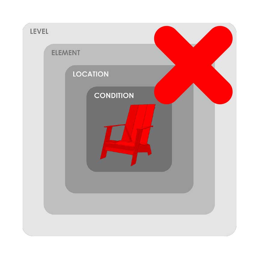 - Assign one tag from each category (LEVEL, ELEMENT, LOCATION, CONDITION)